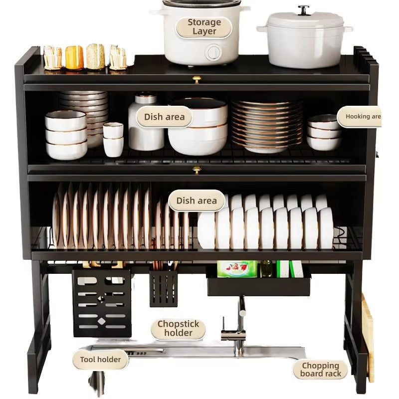 Ahorra espacio y mantén tu cocina impecable con el Organizador de Platos de 2 Pisos en Acero al Carbono, ideal para cocinas modernas y espacios reducidos. Su doble nivel te permite almacenar más utensilios sin ocupar más espacio en el mesón 🍽️⬆️⬆️.